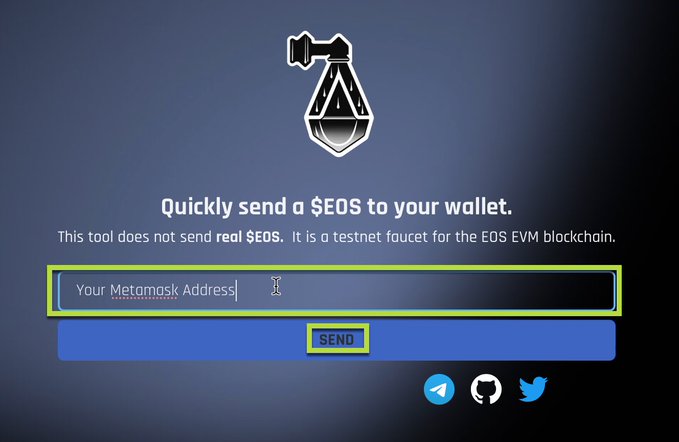 1、EOS水龙头(测试代币) http://faucet.testnet.evm.eosnetwork.com (添加 Metamask EVM 地址)